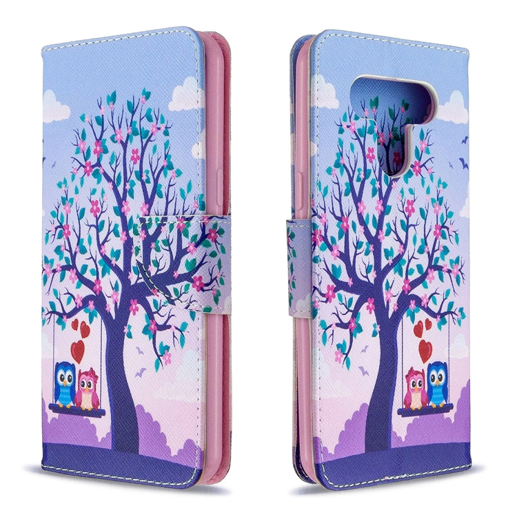 Estuche de Cuero para LG K51 con Tapa Horizontal, Soporte, Ranuras para Tarjetas y Billetera (Dos Búhos)