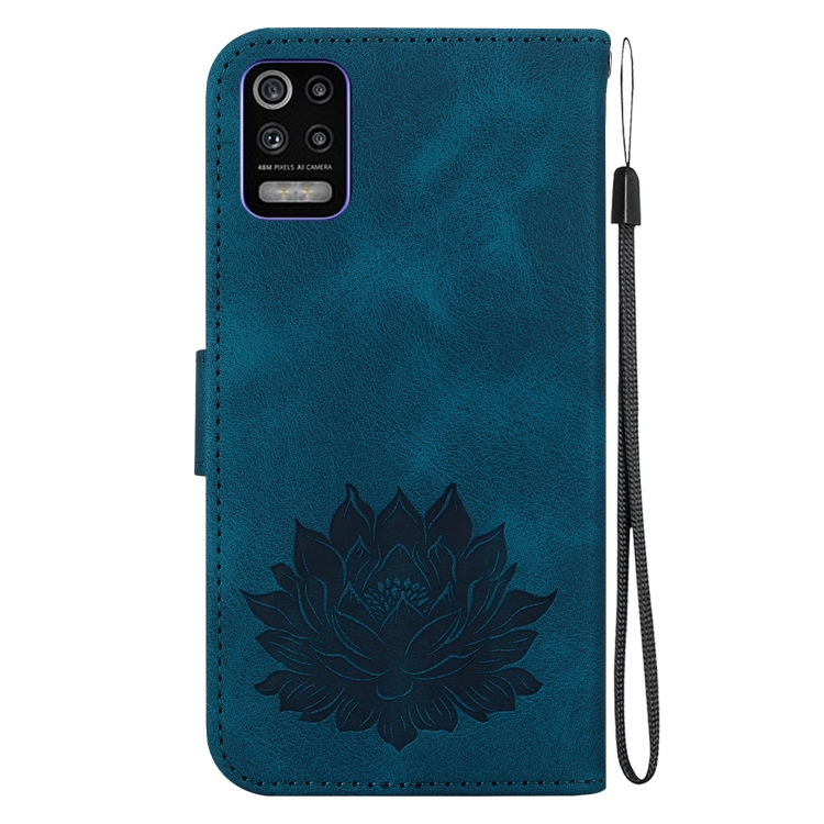 Funda para Teléfono LG K52 K62 Q52 Cuero con Relieve Loto (Azul Oscuro)