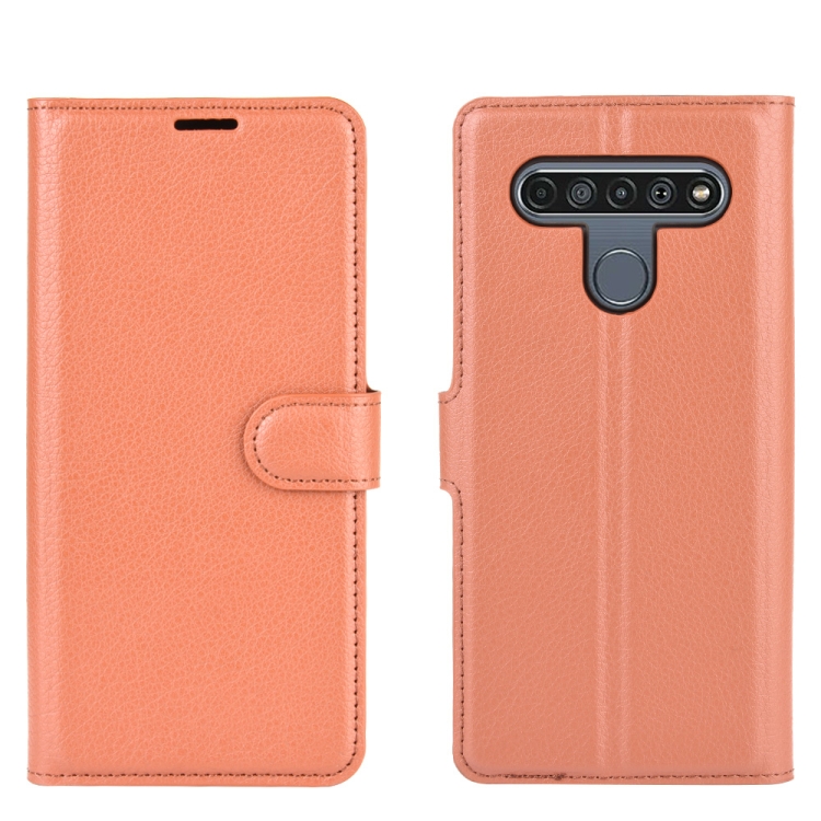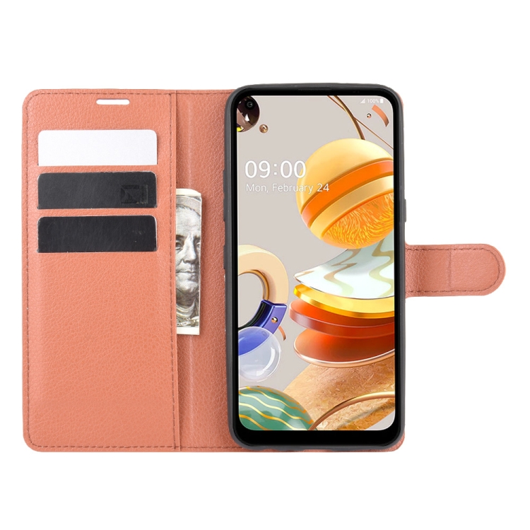Funda Protectora para LG K61 Litchi Texture con Tapa Horizontal, Soporte, Ranuras para Tarjetas y Billetera (Marrón)