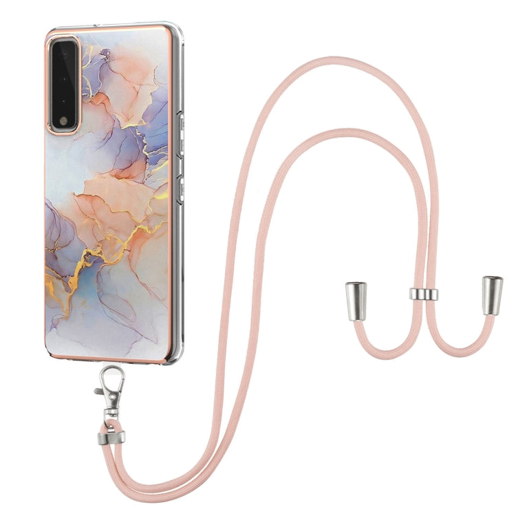 Funda TPU LG Stylo 7 5G Patrón Galvanoplastia Imd a Prueba de Golpes con Cordón (Mármol Blanco Láctea)
