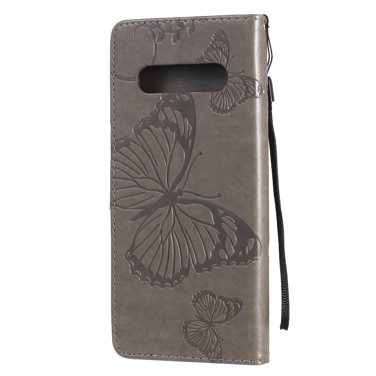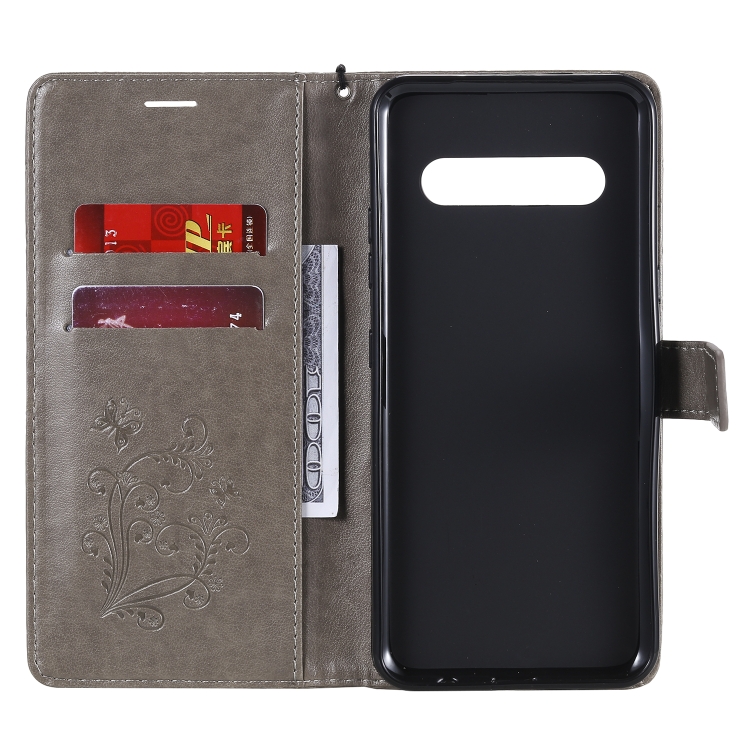 Funda de Cuero para LG V60 3D Mariposas en Relieve con Tapa Horizontal, Soporte, Ranura para Tarjeta y Billetera (Gris)
