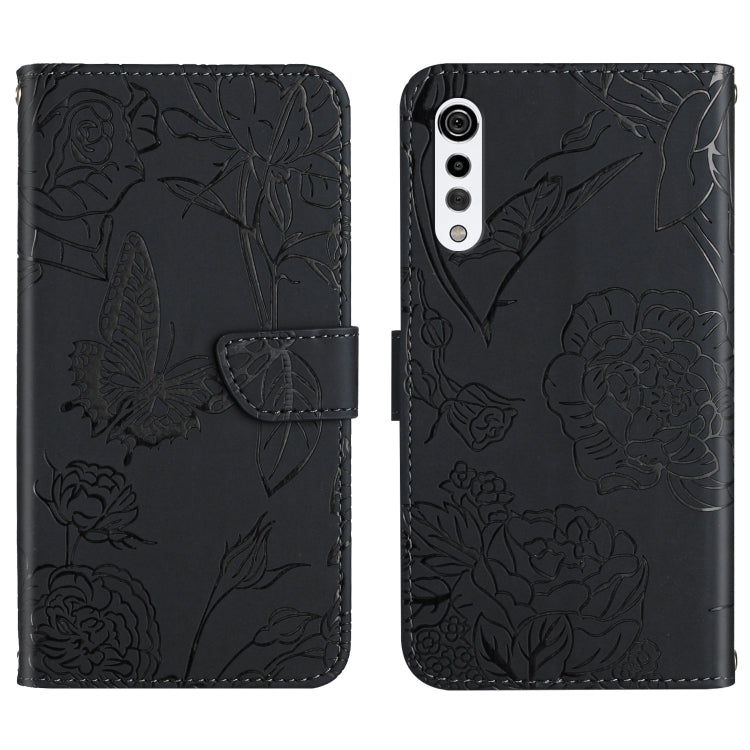 Funda de Cuero en Relieve para LG Velvet 2 Pro Peony Mariposa (Negro)