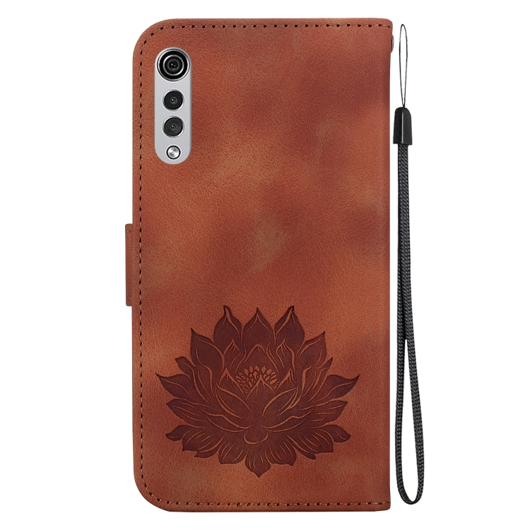 Funda de Cuero para LG Velvet / Velvet 5G / G9 con Relieve de Loto (Marrón)
