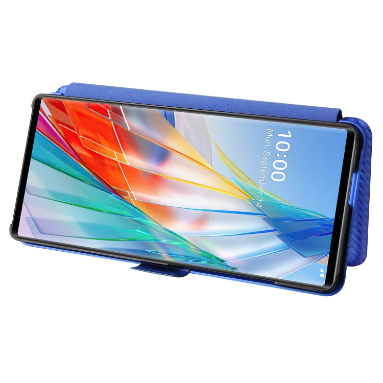 Funda para LG Wing 5G con Hebilla Textura Fibra de Carbono Flip Magnético TPU PC Cuero Pu Ranura (Azul)