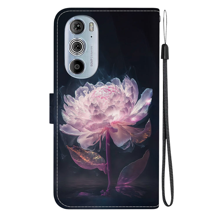 Estuche de Cuero para Motorola Edge + 2022 con Dibujo Coloreado y Textura de Cristal (Peonía Púrpura)