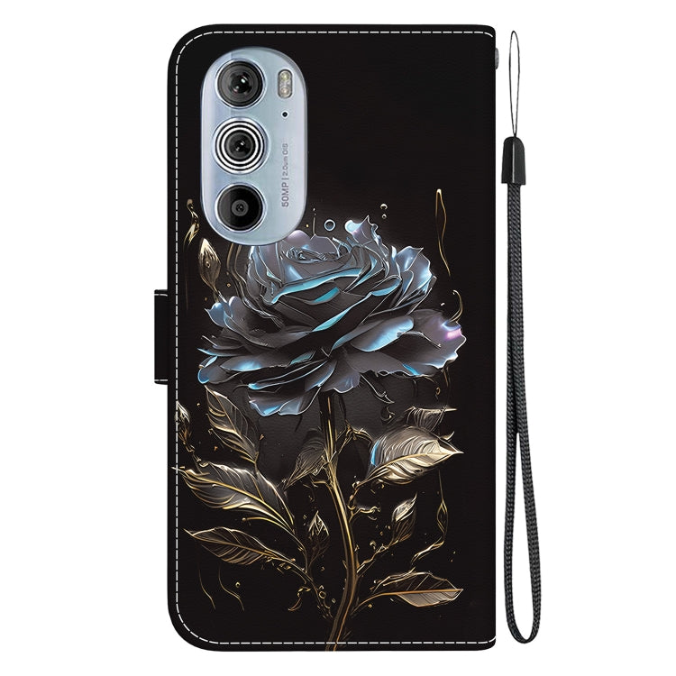 Estuche de Cuero para Motorola Edge + (2022) con Dibujo Coloreado y Textura de Cristal (Rosa Negra)