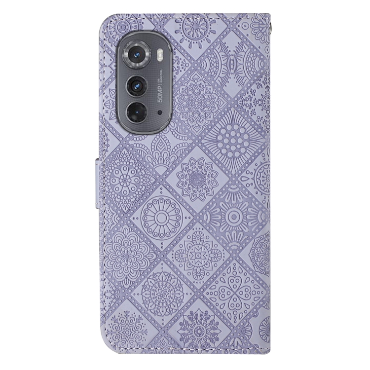 Funda de Cuero para Motorola Edge 2022 con Patrón en Relieve de Estilo Étnico (Púrpura)