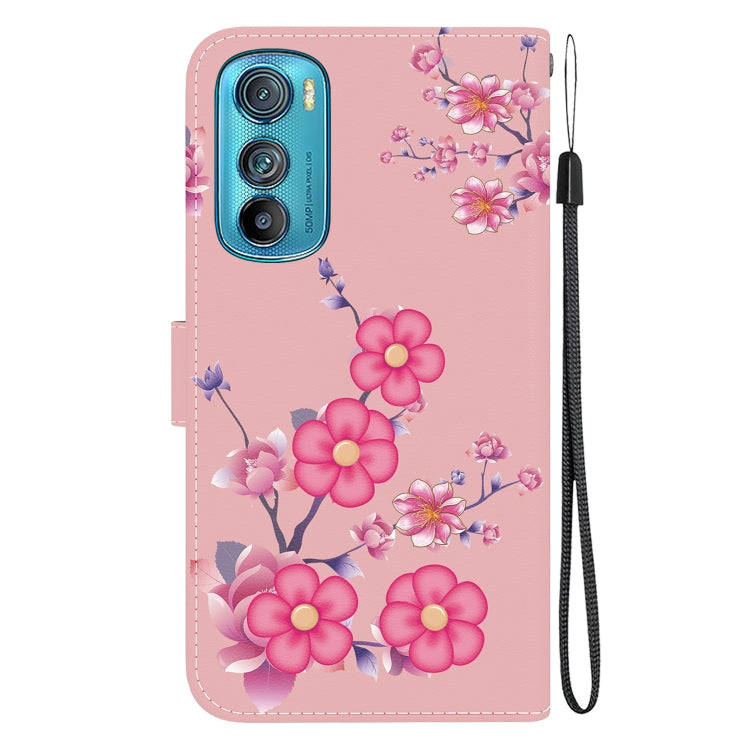 Estuche para Motorola Edge 30 de Cuero con Dibujo Coloreado y Textura de Cristal (Flores de Cerezo)