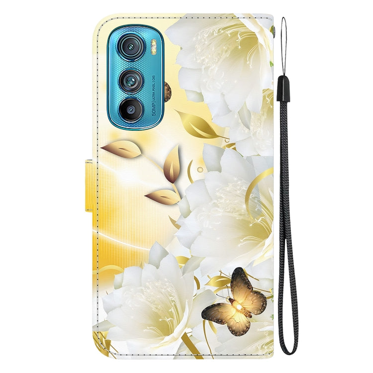 Funda de Cuero para Motorola Edge 30 con Dibujo Coloreado y Textura de Cristal (Epiphyllum de Mariposa Dorada)