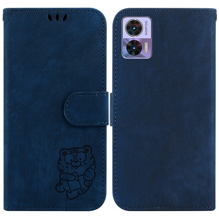 Funda para Motorola Edge 30 Neo y 30 Lite de Cuero con Relieve Little Tiger (Azul Oscuro)