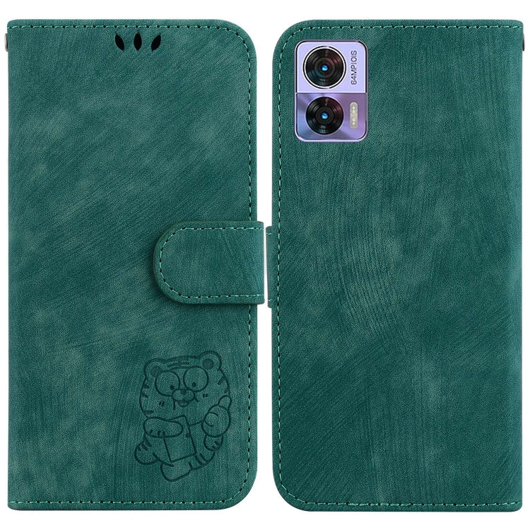 Funda para Motorola Edge 30 Neo y 30 Lite de Cuero con Relieve Little Tiger (Verde)
