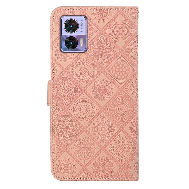 Funda para Motorola Edge 30 Neo de Cuero con Patrón en Relieve Estilo Étnico (Rosa)