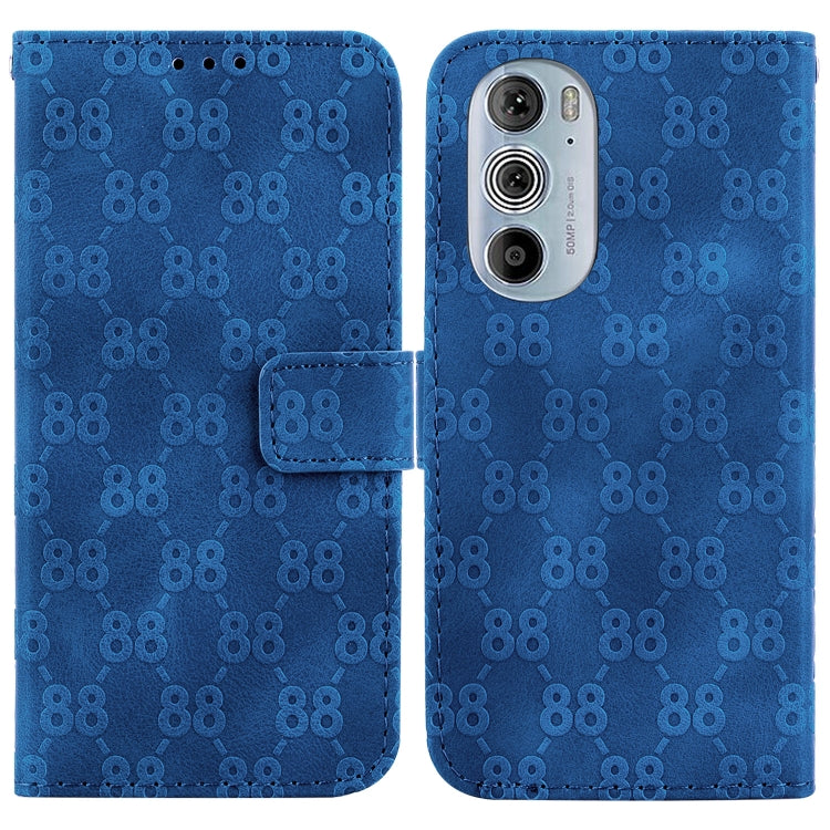 For Motorola Edge 30 Pro / Edge+ 2022 Double 8 Shape Embossed Leather Phone Case (Blue)