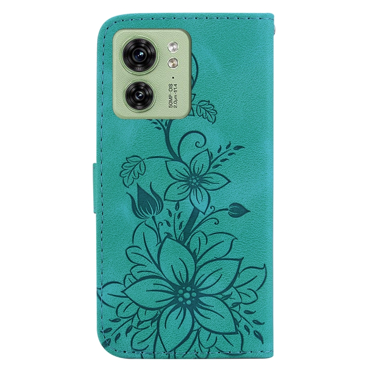 Funda de Cuero con Relieve Lily para Motorola Edge 40 (Verde)