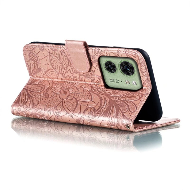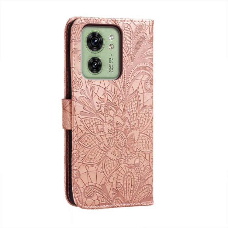 Funda de Cuero para Motorola Edge 40 con Tapa y Estampado de Flores de Encaje (Oro Rosa)
