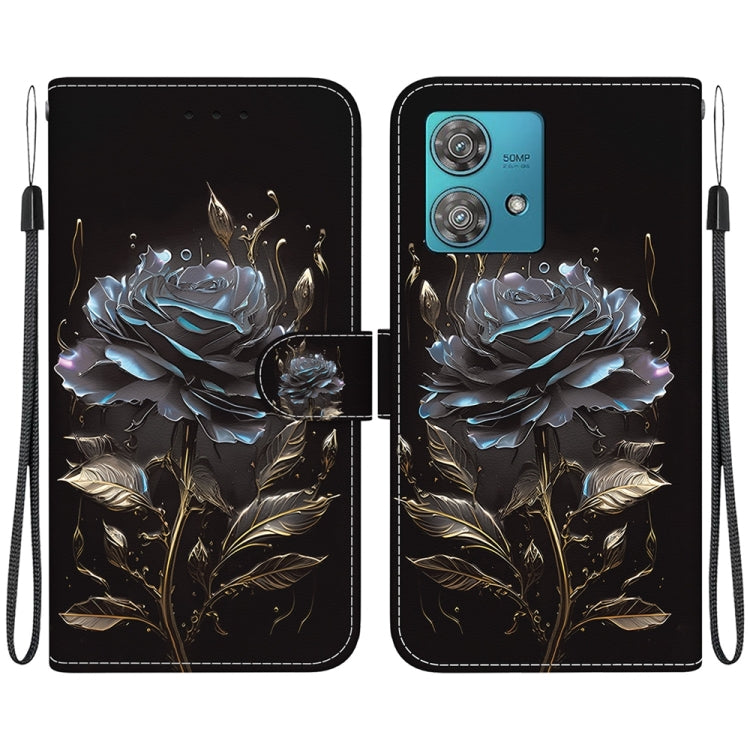 Estuche para Motorola Edge 40 Neo de Cuero con Dibujo Coloreado y Textura de Cristal (Rosa Negra)