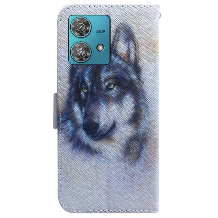 Funda de Cuero para Motorola Edge 40 Neo con Tapa y Dibujo Coloreado (Lobo Blanco)