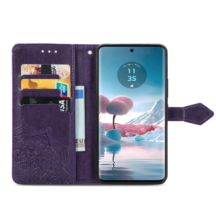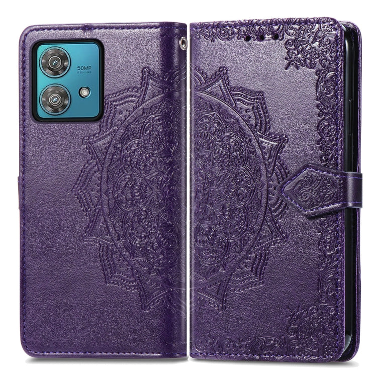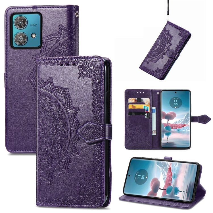 Funda de Cuero para Motorola Edge 40 Neo Mandala Flower en Relieve (Púrpura)