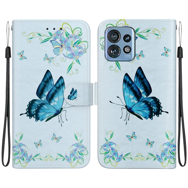 Funda de Cuero para Motorola Edge 40 Pro con Dibujo Coloreado y Textura de Cristal (Pensamientos Azules)