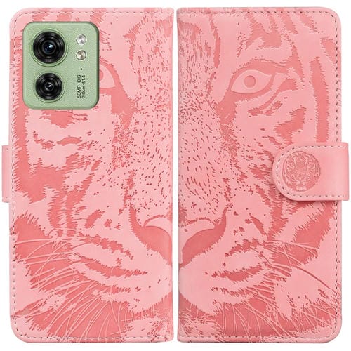 - 1x Funda de Cuero para Motorola Edge 40 Tiger con Relieve Patrón (Rosa)