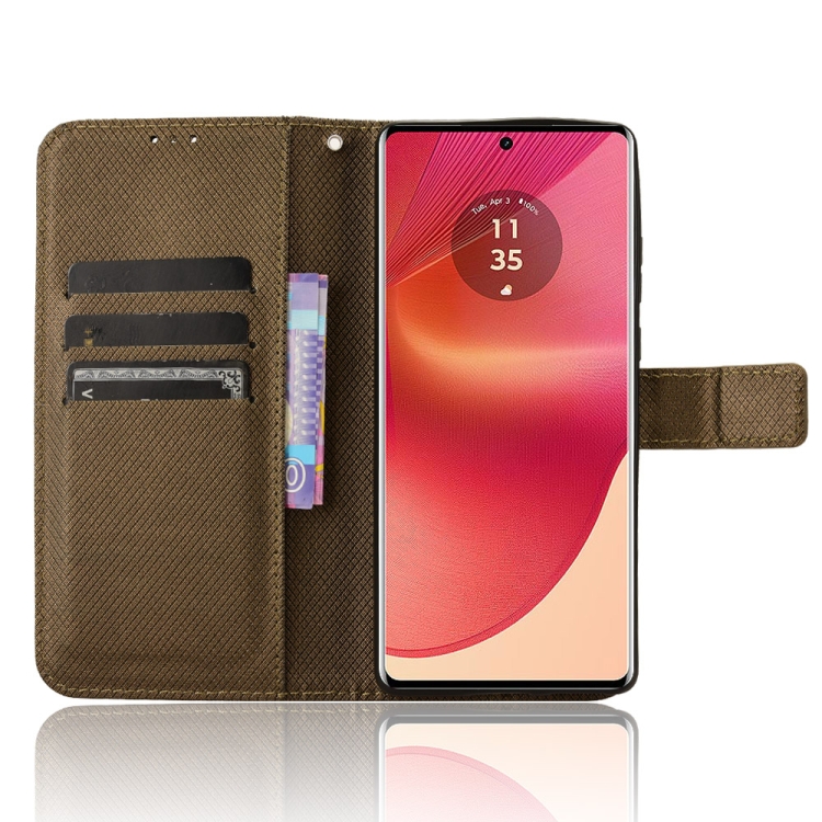 Funda de Cuero para Motorola Edge 50 Fusion con Textura Diamond (Marrón)