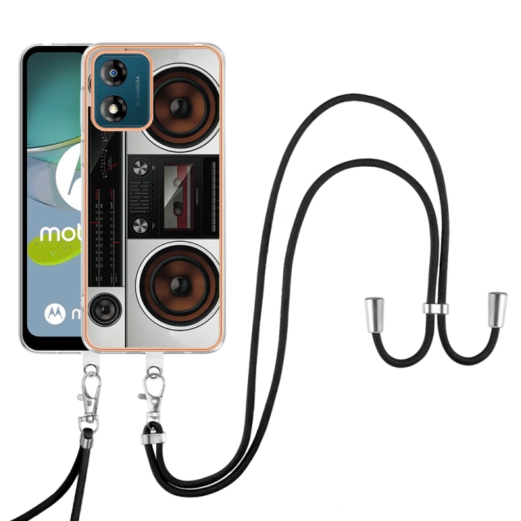 Estuche para Motorola Moto E13 IMD Doble Cara con Galvanoplastia y Cordón (Radio Retro)