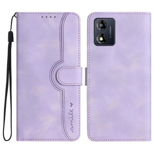 For Motorola Moto E13 Leather Phone Case Skin Feeling Heart Pattern Case(Purple)