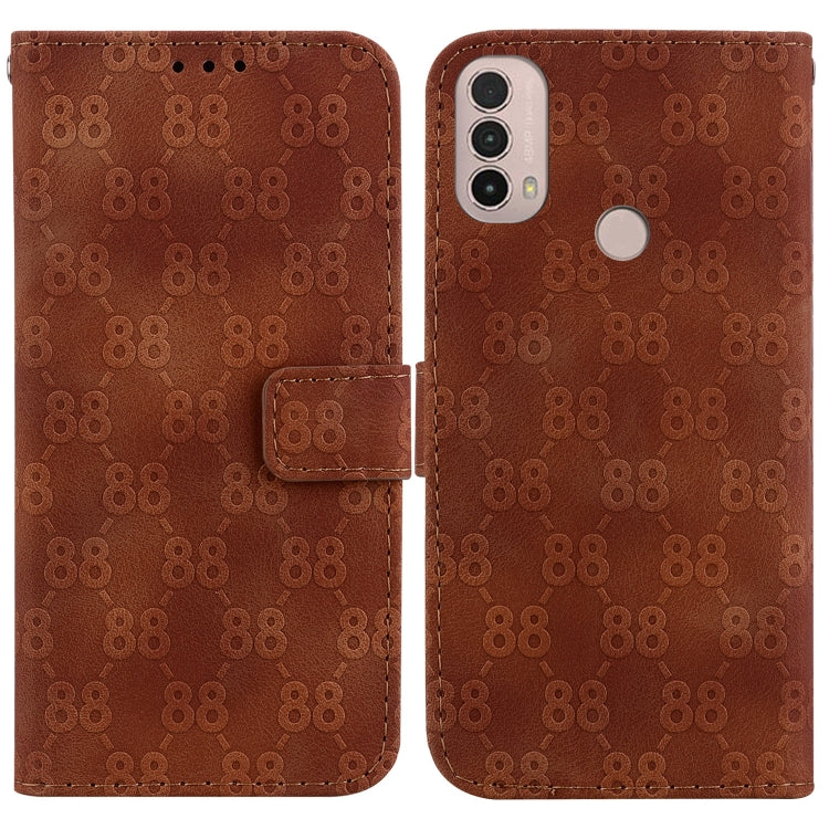 Estuche para Motorola Moto E20 E30 E40 de Cuero en Relieve Doble Forma de 8 (Marrón)
