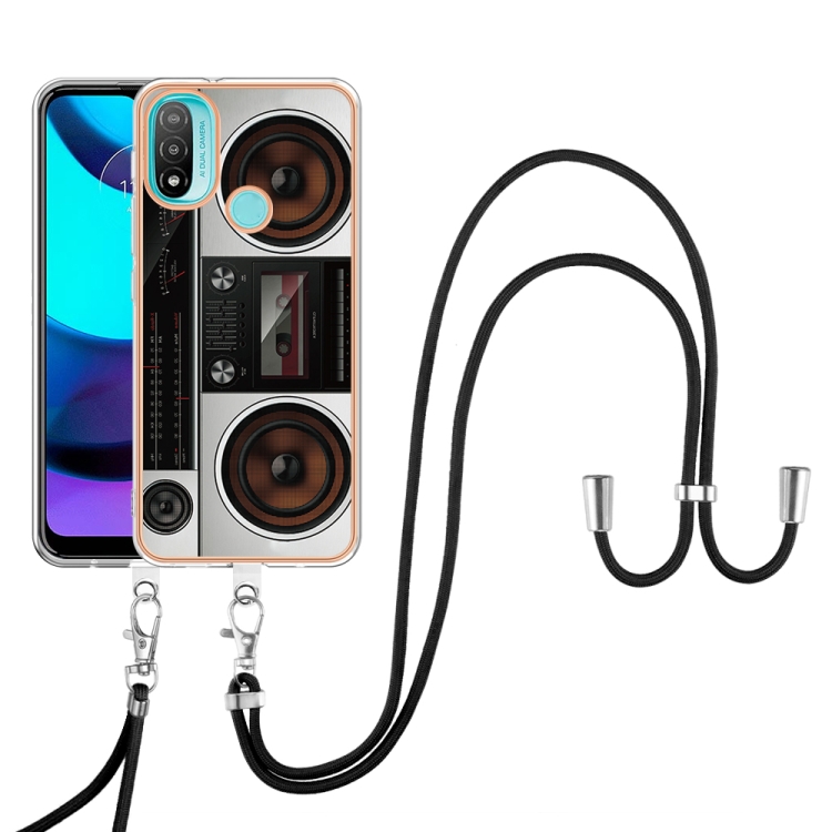 Estuche para Motorola Moto E20 / E30 / E40 Imd Doble Cara con Galvanoplastia y Cordón (Radio Retro)
