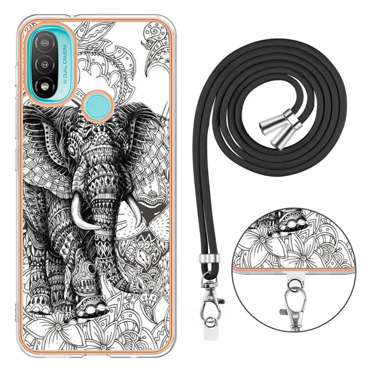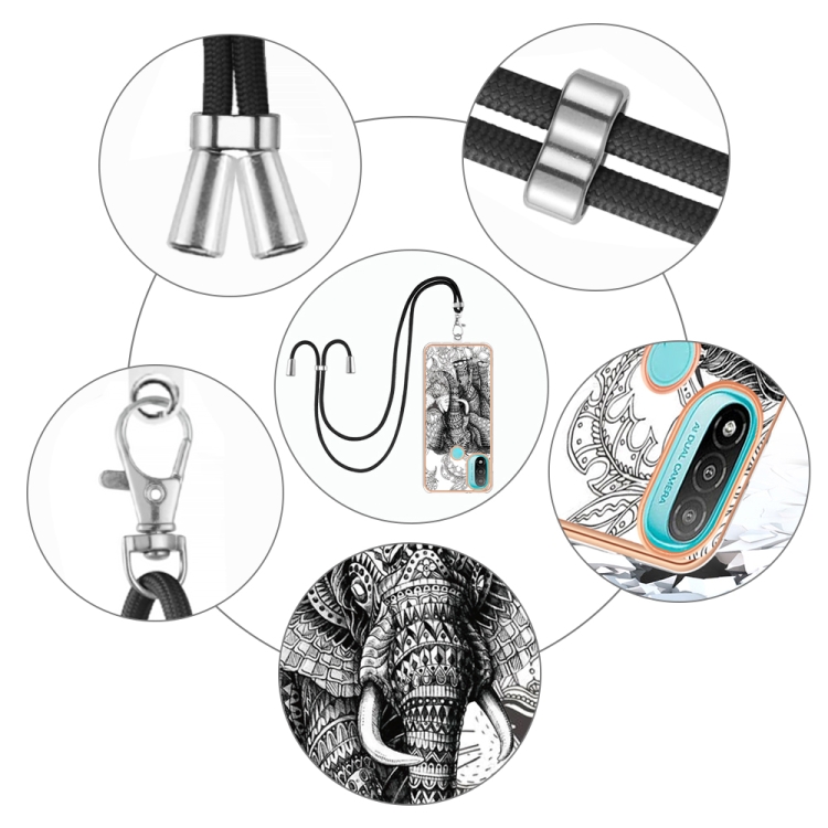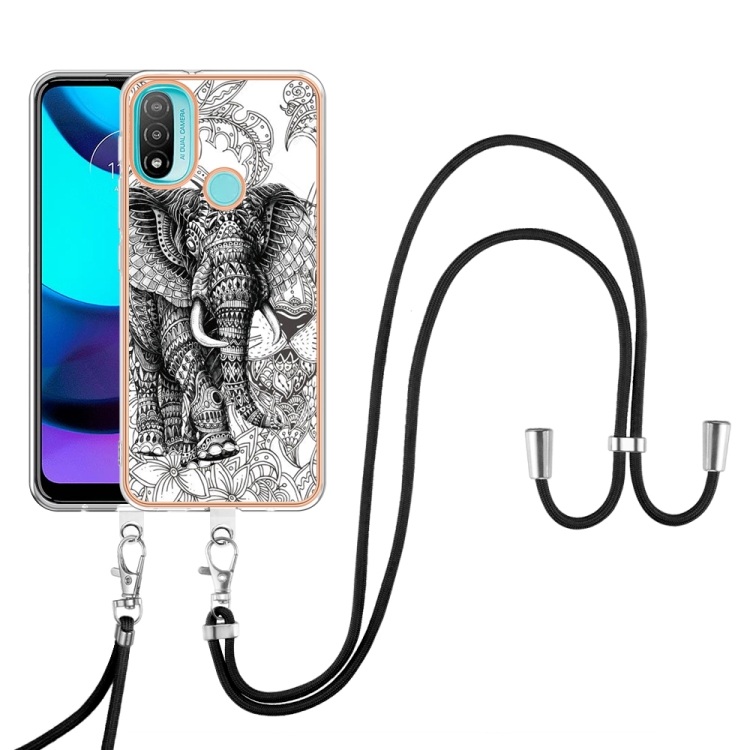Estuche para Motorola Moto E20 E30 E40 Imd Doble Cara con Galvanoplastia y Cordón (Totem Elephant)