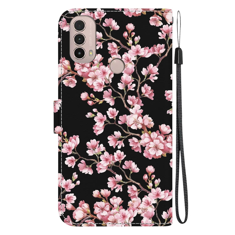 Funda de Cuero para Motorola Moto E20 / E30 / E40 con Dibujo Flor de Ciruelo y Textura de Cristal