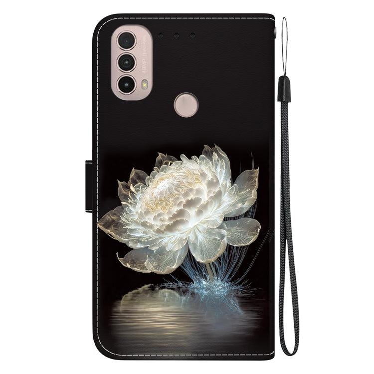 Funda para Motorola Moto E20 E30 E40 de Cuero con Dibujo Coloreado y Textura de Cristal (Peonía de Cristal)