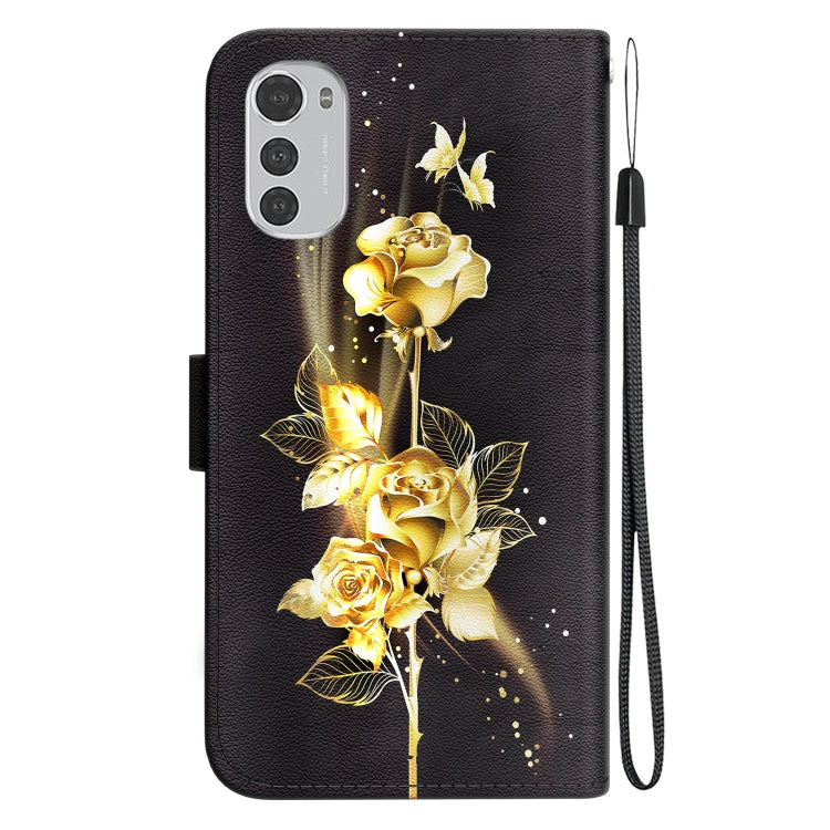 Funda de Cuero Motorola Moto E32 con Dibujo Coloreado y Textura de Cristal (Mariposa Dorada Rosa)