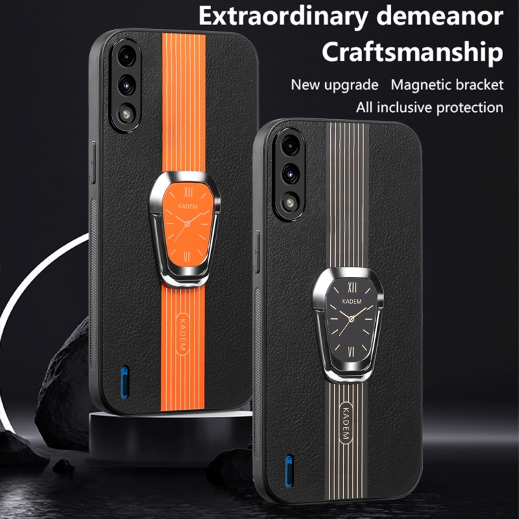 Funda Trasera de Cuero Litchi Magnética con Soporte para Motorola Moto E7 Power (Naranja)