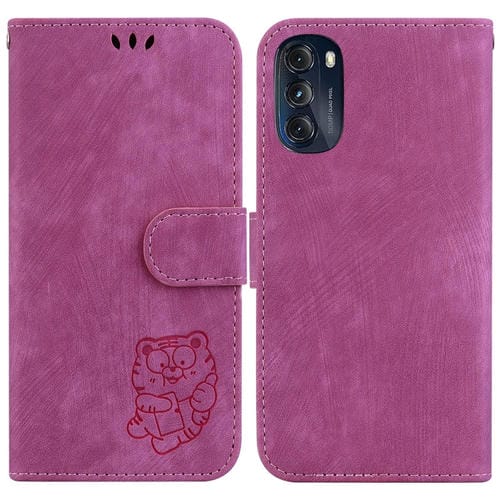 For Motorola Moto G 2022 Little Tiger Embossed Leather Phone Case(Rose Red)