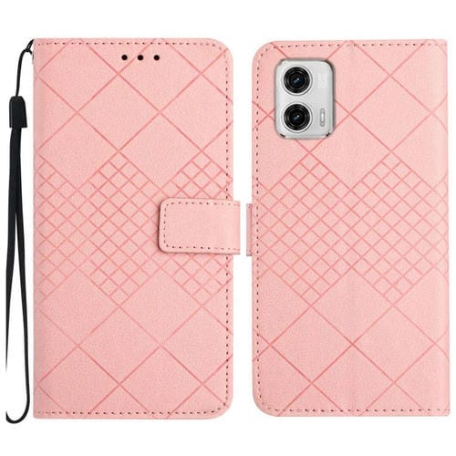 - 1x Funda de Cuero para Motorola Moto G 5G (2023) con Textura de Rejilla Rómbica (Rosa)