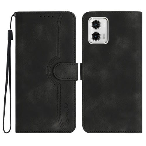 - 1x Funda de Cuero para Motorola Moto G 5G (2023) con Sensación de Piel y Patrón de Corazón (Negro)