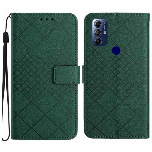 Funda de Cuero para Motorola Moto G Play 2023 y G Pure 2021 con Textura de Rejilla Rómbica (Verde)
