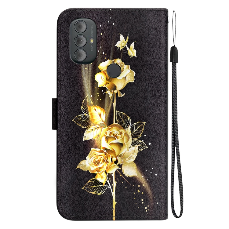 Estuche de Cuero para Motorola Moto G Power 2022 con Dibujo Coloreado y Textura de Cristal (Mariposa Dorada Rosa)