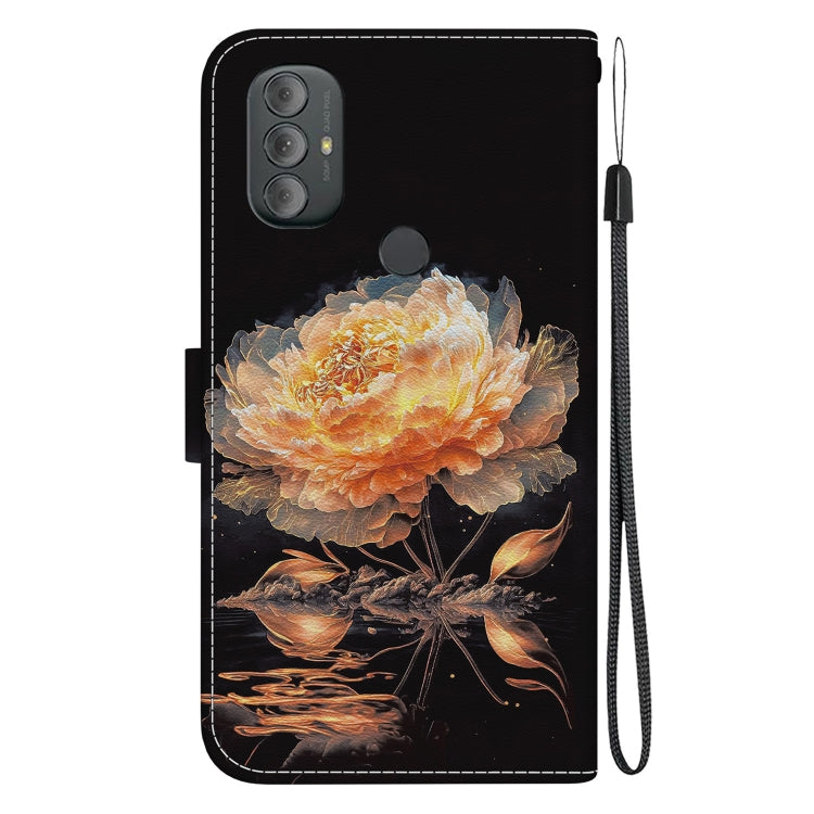 Funda de Cuero Motorola Moto G Power 2022 con Dibujo Coloreado y Textura de Cristal (Peonía Dorada)