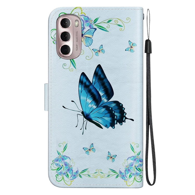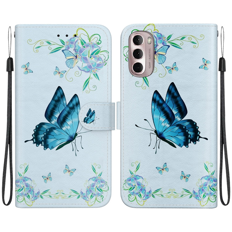Funda de Cuero para Motorola Moto G Stylus 4G (2022) con Dibujo Coloreado y Textura de Cristal (Azul)