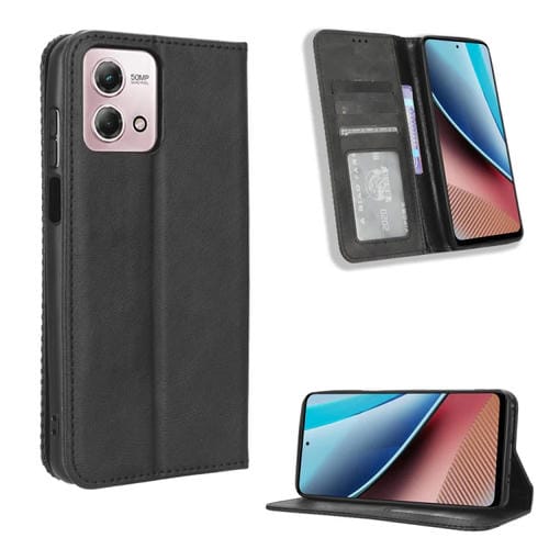 - 1x Funda de Cuero para Motorola Moto G Stylus 4G (2023) con Hebilla Magnética y Textura Retro (Negro)