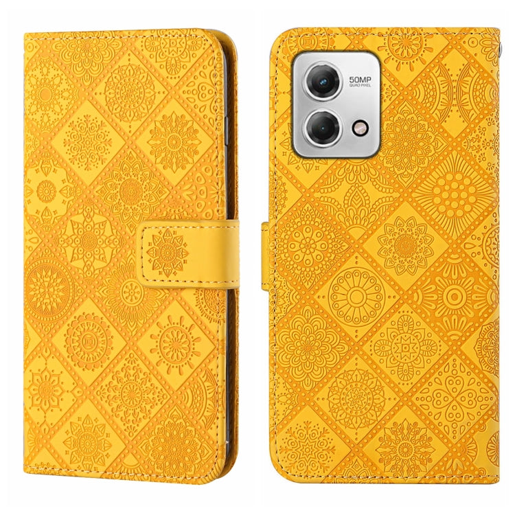 Funda de Cuero para Motorola Moto G Stylus 5G 2023 con Patrón en Relieve Estilo Étnico (Amarillo)