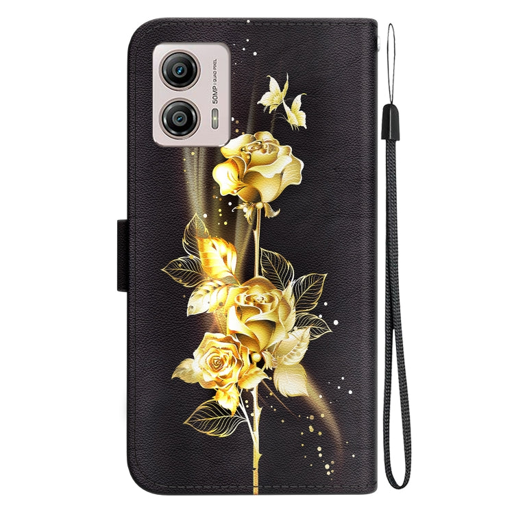 Funda para Motorola Moto G13 G23 G53 de Cuero con Dibujo Coloreado y Textura de Cristal (Mariposa Dorada Rosa)