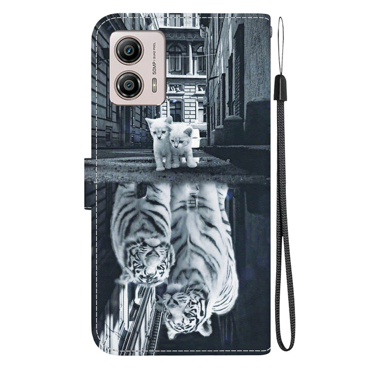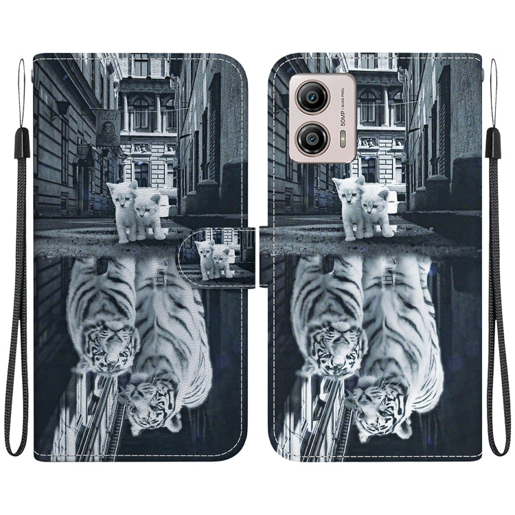 Funda para Motorola Moto G13 / G23 / G53 de Cuero con Dibujo Coloreado y Textura de Cristal (Reflejo de Tigre Gato)