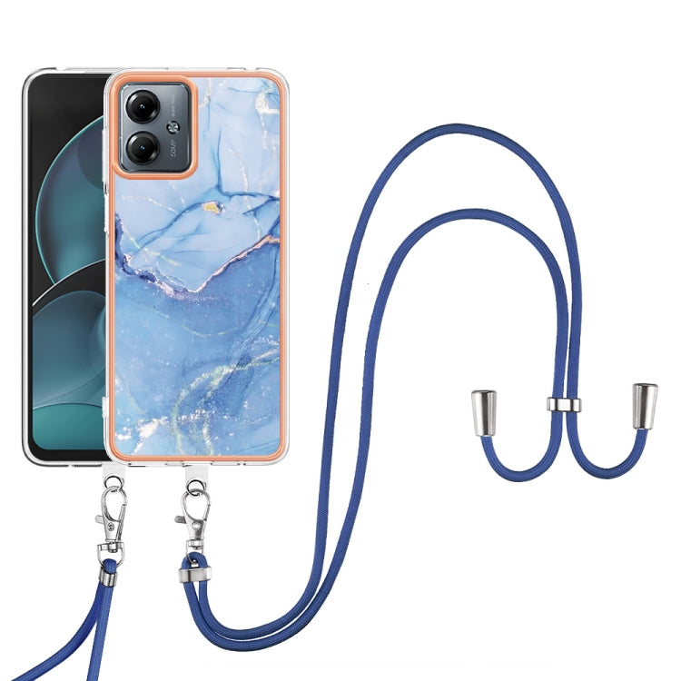 Estuche para Motorola Moto G14 Imd Doble Cara Mármol Galvanizado con Cordón (Azul)