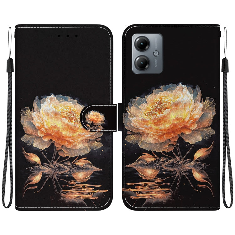 Funda de Cuero para Motorola Moto G14 con Dibujo Coloreado y Textura de Cristal (Peonía Dorada)