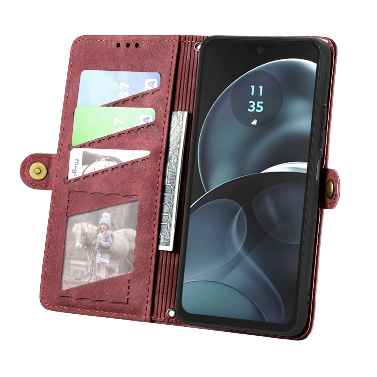 Funda de Cuero para Motorola Moto G14 con Hebilla Lateral y Billetera con Cremallera (Rojo)