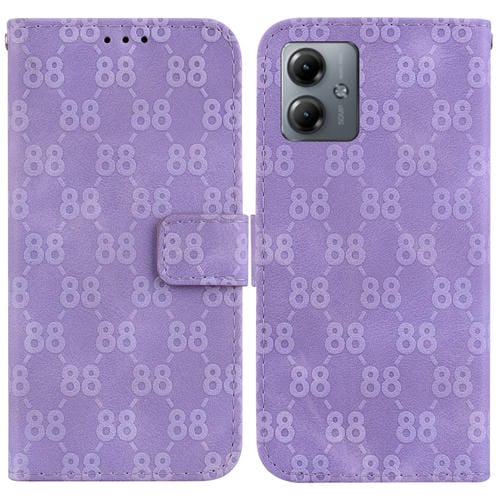 Funda para Motorola Moto G14 de Cuero con Relieve en Forma de 8 Dobles (Púrpura)