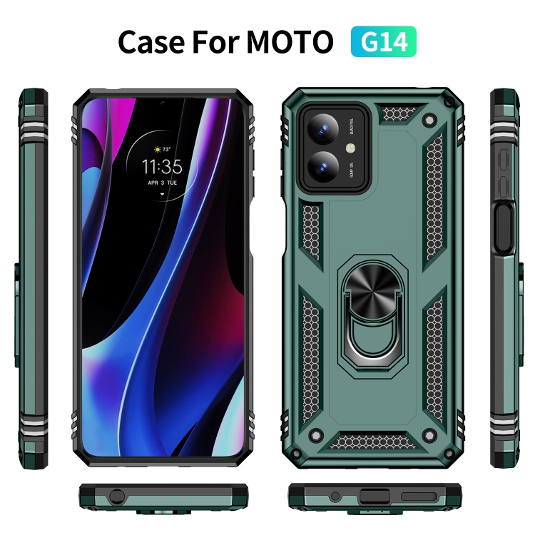 Funda para Motorola Moto G14 TPU + PC a Prueba de Golpes con Soporte (Verde Oscuro)